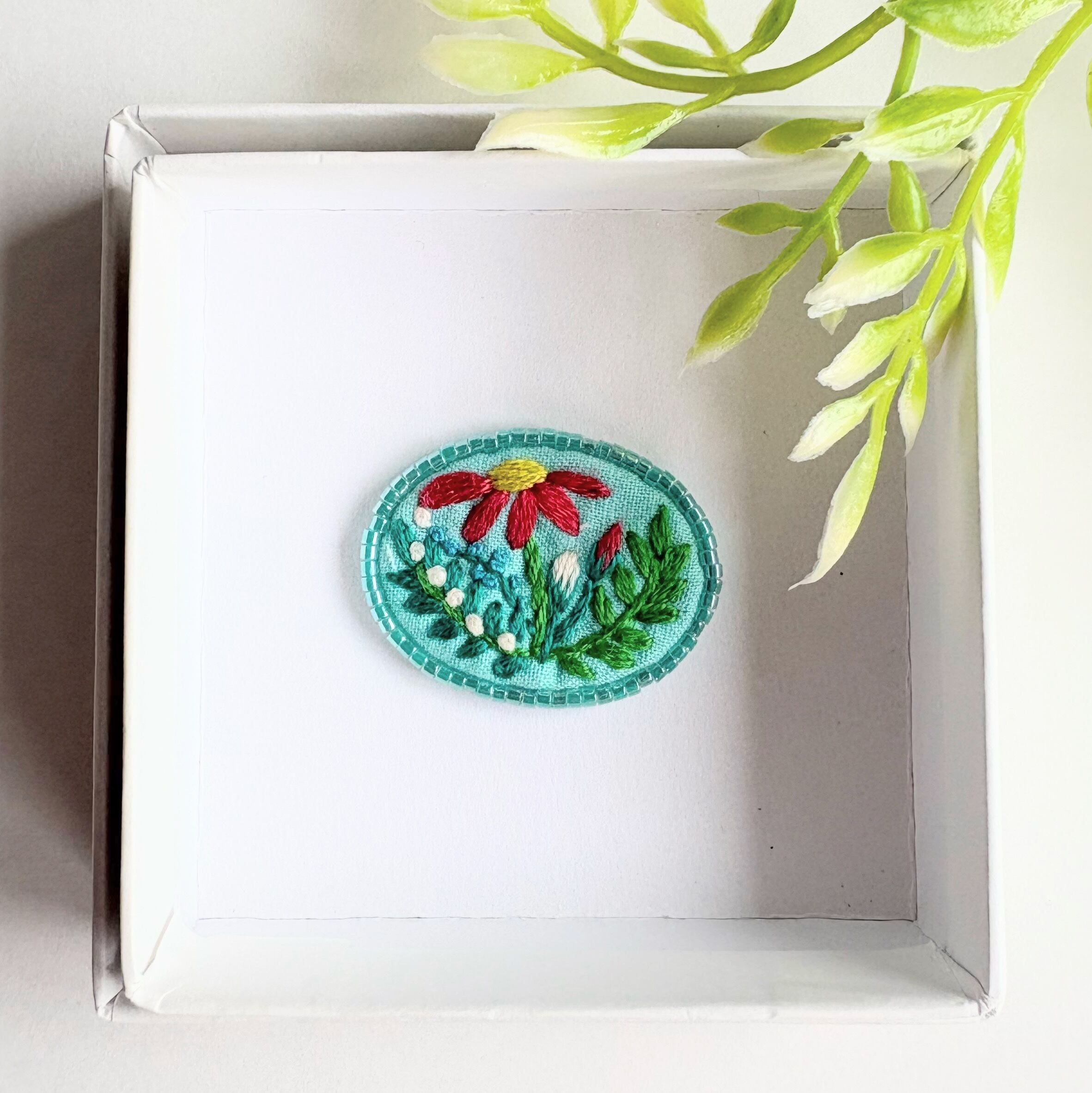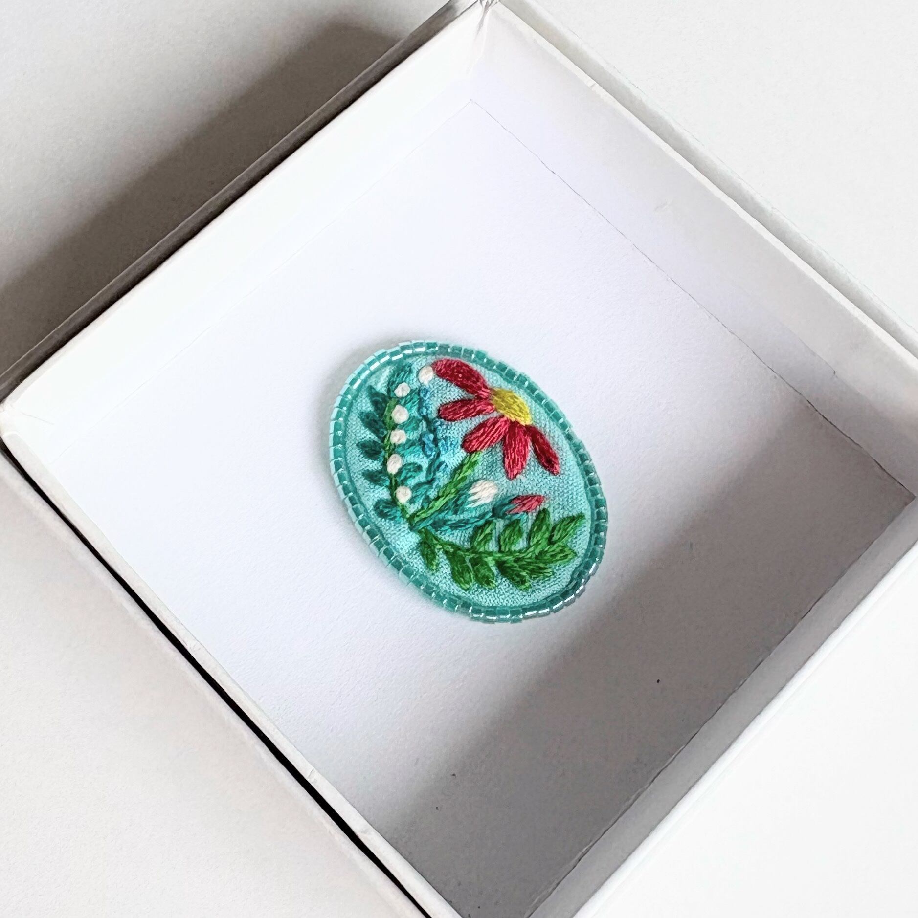 ビーズで飾った草花のミニ刺繍ブローチ【botanical】#388