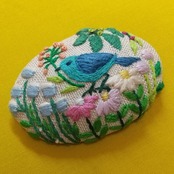 ことりと草花の刺繍ブローチ【botanical】Nb93