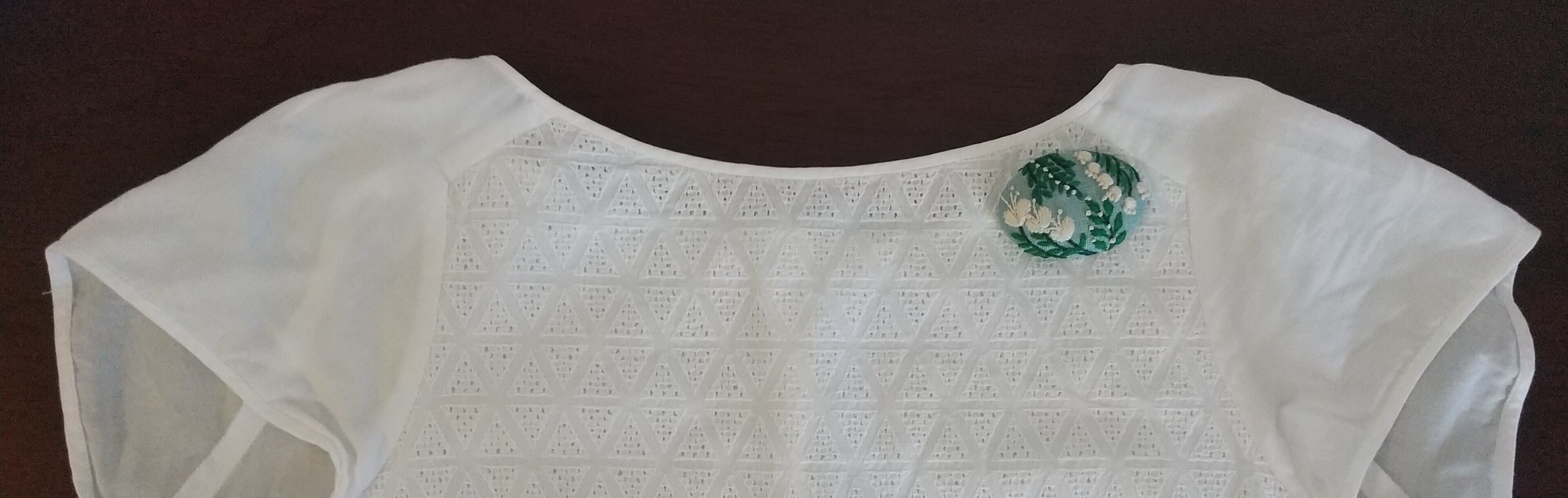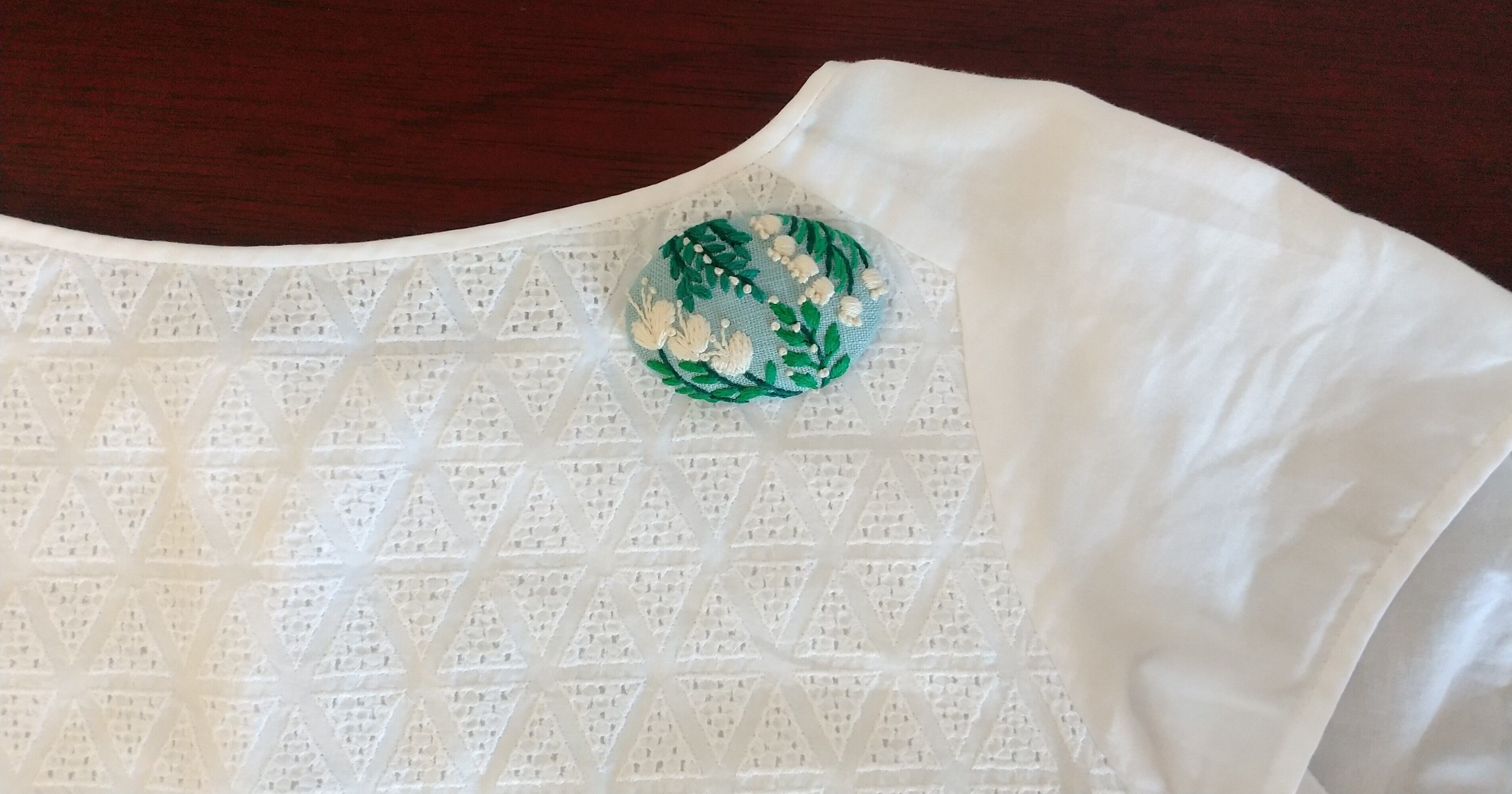 水色のリネン地に小さな白いお花を手刺繍しました。