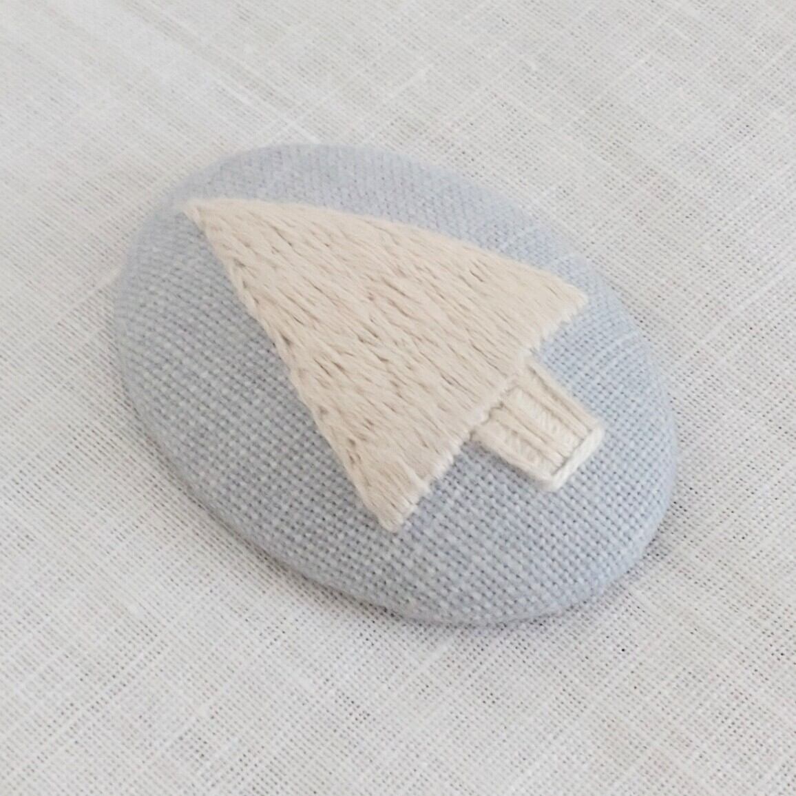 ホワイトツリーの刺繍ブローチ 【hokuo】#132
