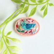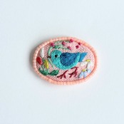 ビーズで飾ったことりと草花の小さな刺繍ブローチ【botanical】#171