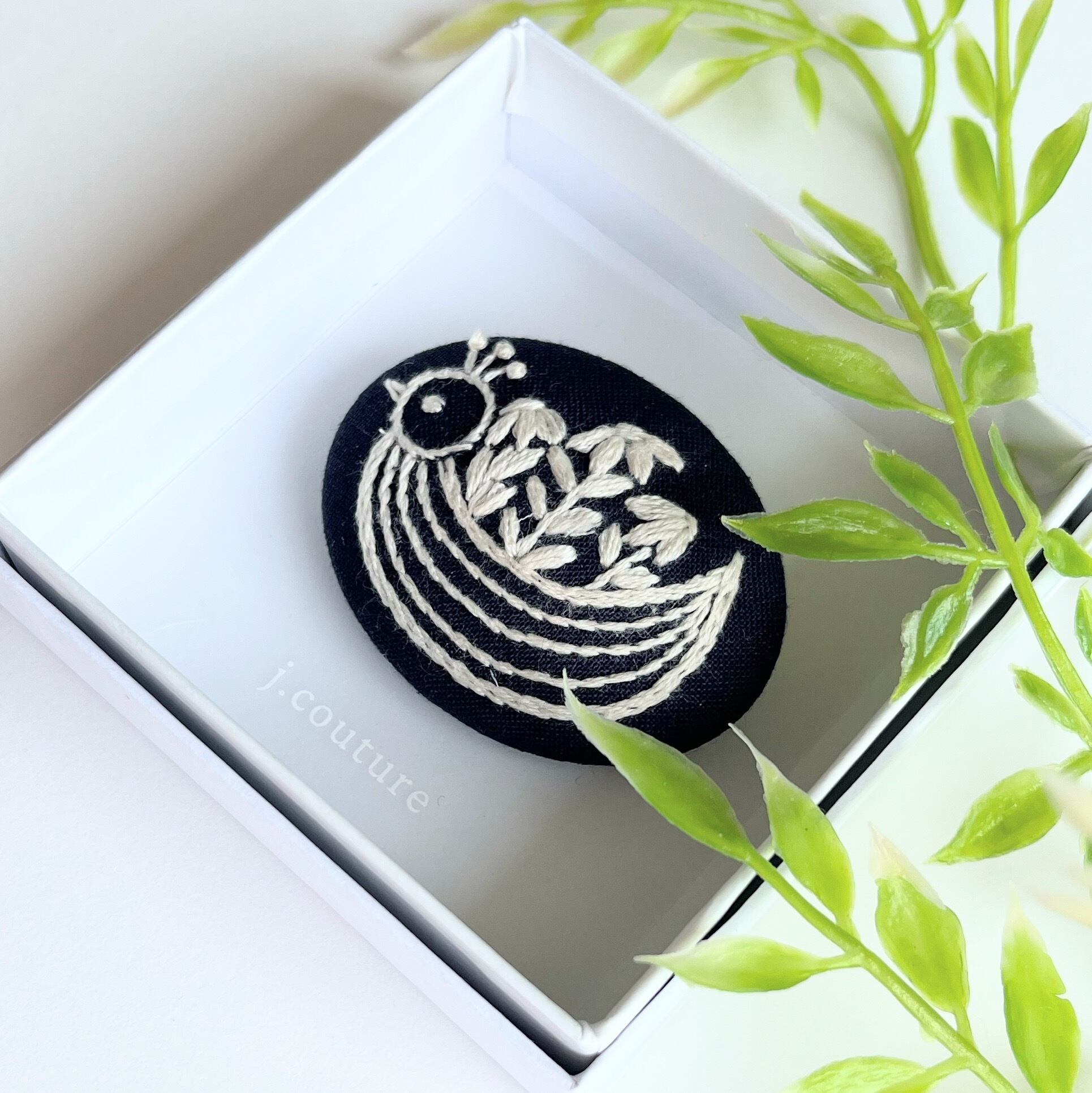 北欧風ことりの花籠の刺繍ブローチ【hokuo】#196