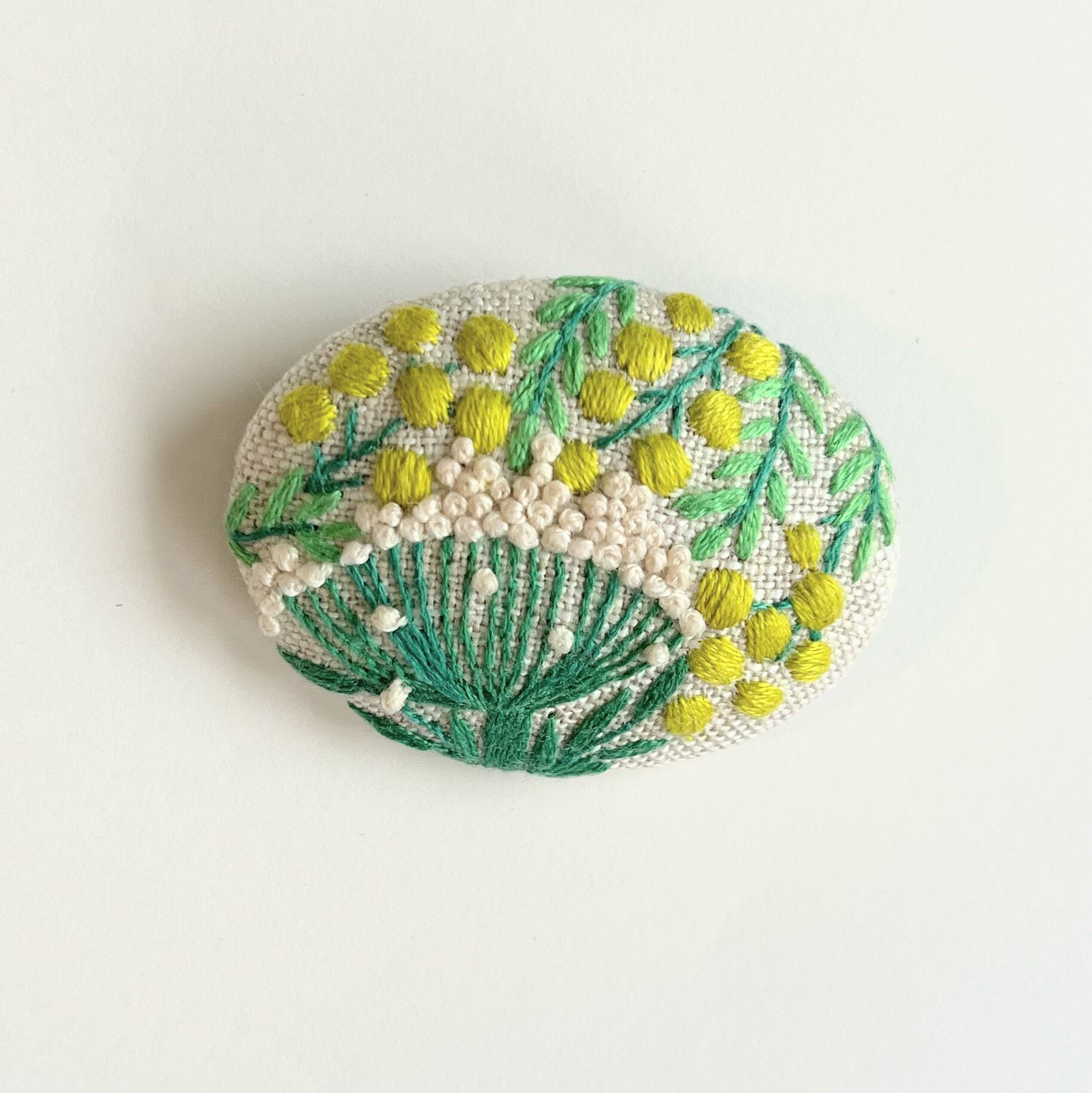 ミモザとレースフラワーの刺繍ブローチ【botanical】#239