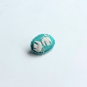 j.coutureの定番のオーバルブローチ(45ミリ×35ミリ)よりもひとまわり小さなミニブローチです。