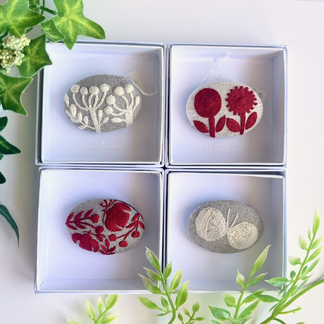 j.coutureの刺繍ブローチをお使いいただくお客様に、付ける度に「可愛い」と心の中思っていただけること、鏡に写ったその胸元を見てほんの少し微笑んでしまいたくなるようなそんなお品をお届けしたいと思っています。