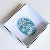 シンプルな色合わせで小さなブローチは使い勝手がよくお洋服、お帽子、トートバッグ等のワンポイントにもいかがでしょうか。